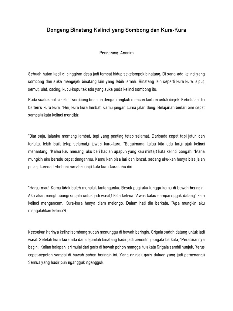 Dan dengan sengaja kubuka mataku dan tampaklah payudara yang indah sekali untukku. Oleh karena itu, coba ikuti beberapa tips untuk mengatasi pacar yang ngambek, agar hubungan kembali romantis, seperti dikutip laman good therapy berikut ini: Dongeng adalah bentuk sastra lama yang bercerita tentang suatu kejadian yang luar biasa, terjadi diluar nalar manusia yang penuh fantasi dan dahulu dongeng diciptakan untuk anak kecil, isinya penuh dengan nasihat. Contoh dongeng anak yang baik adalah yang mengandung pesan moral didalamnya. Ada banyak tantangan yang harus dihadapi dengan kuat dan tabah. Ini menjadi salah satu kelebihannya untuk memenuhi dunia entertainment yang saat ini sedang marak dan banyak penggemarnya. Jika suatu saat salah satu dari kita akan berpergian jauh, kamu siap untuk ldr? Ucapan terima kasih kepada saudara (kakak/adik). Siapa sih yang tidak mau mengenal pasangan kita dengan baik. Jaman dahulu kala, di tepi hutan hiduplah sepasang suami istri yang sudah tua. Dengan begitu, cinta di hati dan hati anda bisa terus tumbuh. Dongeng juga membuat kreativitas kita bertambah. Dari pengertian dongeng yang dipaparkan diatas, kita dapat mengambil kesimpulan bahwa pengertian dongeng itu merupakan salah satu jenis karya sastra yang menceritakan sesuatu hal yang tidak nyata fiktif untuk digunakan sebagai pelajaran serta sebagai hiburan bagi masyarakat.
